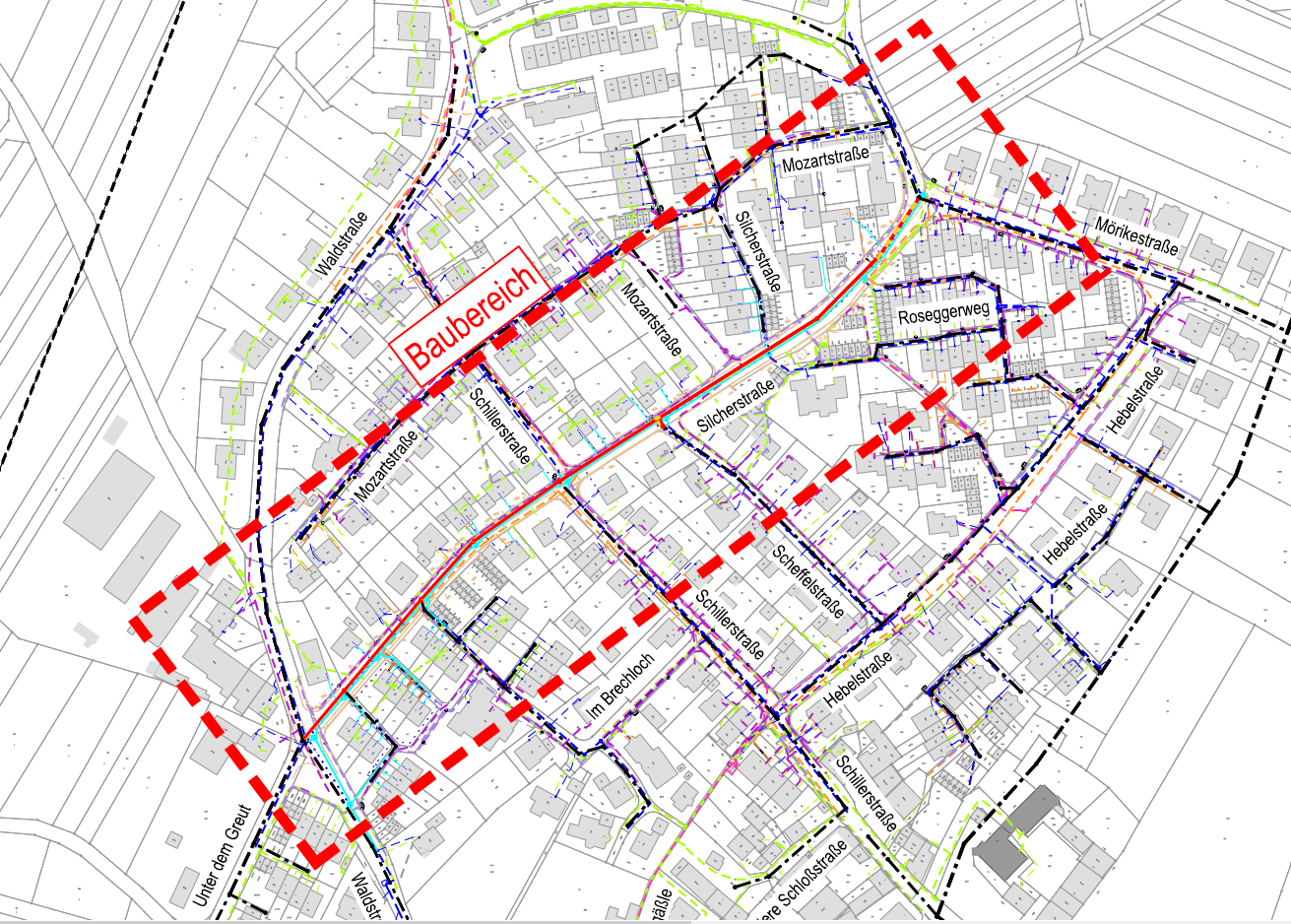 Der Baubereich erstreckt sich über die Silcherstraße von Höhe der Waldstraße 13 bis zum Kreuzungsbereich der Mörikestraße. Die Arbeiten dauern voraussichtlich bis 31. Juli 2027.